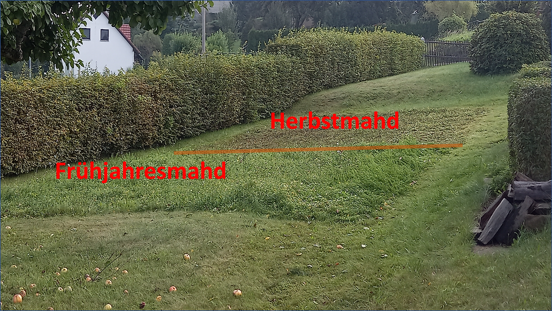 Bei der Wechselseitigen Mahd wird jeweils die Hälfte der Fläche im Frühjahr und Herbst gemäht. Im folgenden Jahr wird gewechselt.