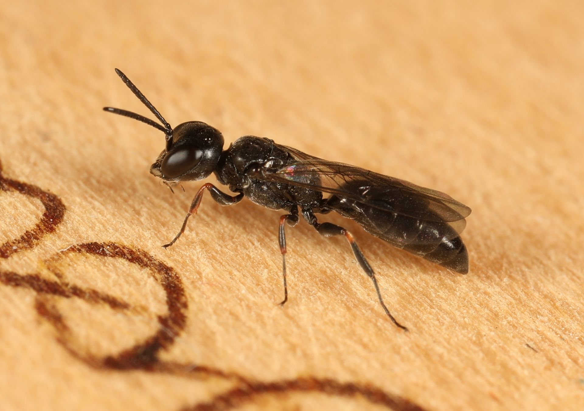 Diese ca. 2 - 3 mm großen Löcher sind kaum erkennbar mit kleinen Steinchen und Holzspänchen verschlossen worden. Nur bei starker Vergrößerung kann das verwendete Harz erkannt werden. Daher glauben wir, dass hier die gewöhnliche Löcherbiene (Heriades truncorum) oder eine Grabwespe aus der Gattung Passoloecus ihre Brut angelegt haben. Die Löcherbiene nistet auch in hohlen Pflanzenstengeln, z. B. von Brombeeren. Ist einmal ein Nest erfolgreich gebaut worden nutzen ihre Nachkommen manchmal das alte Nest wieder. Sie machen es sauber und belegen den Nistplatz erneut.
